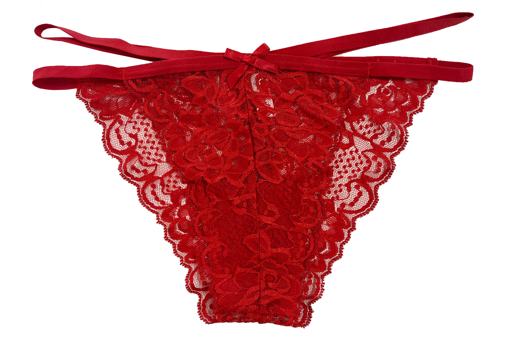 This lace cheeky features a delicate lace front complemented by elastic straps at the hips, adding a modern twist to a classic design. The ruched rear enhances its flattering fit, while a petite bow at the front adds a feminine touch. Made from 90% Nylon and 10% Spandex, it offers a comfortable and stretchy fit. Available in sizes XS–2X.