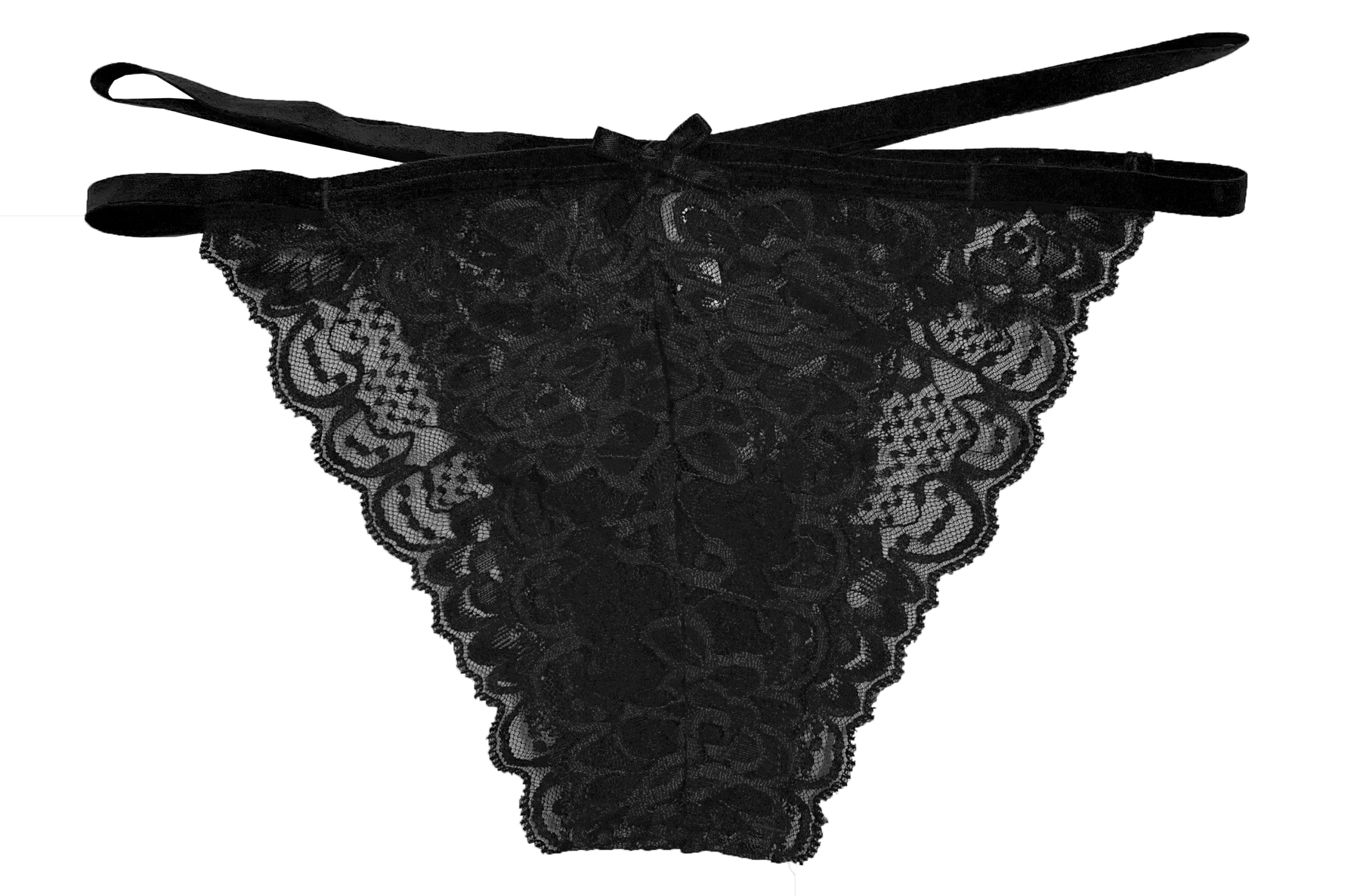 • Delicate lace front with elastic straps at the hips