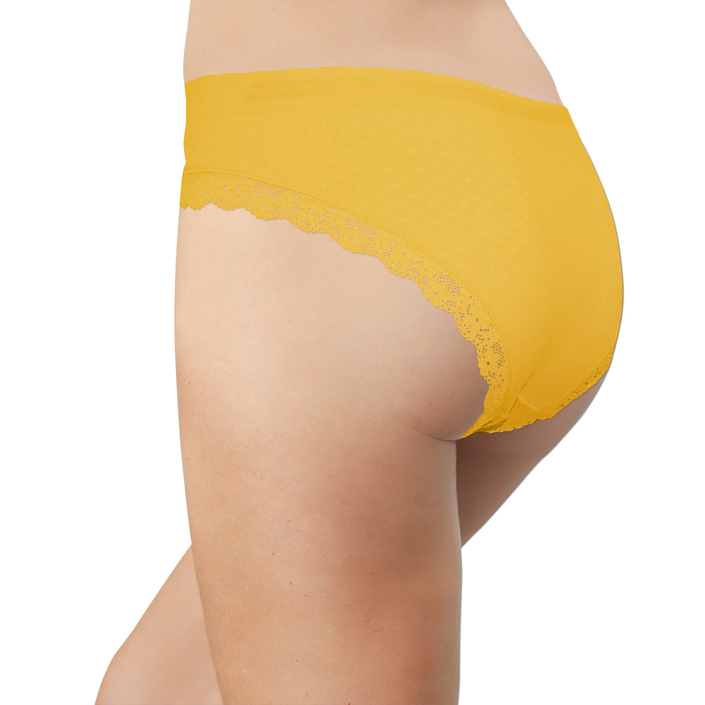 Indulge in the perfect blend of comfort and charm with the Seamless Dot and Lace Bikini. Featuring a delicate scalloped lace trim and a subtle dot pattern, this bikini adds a touch of elegance to your everyday essentials. Crafted from soft, breathable fabric, it offers a seamless, tag-free design that ensures no irritation, while the classic bikini cut provides moderate coverage and a flattering fit.