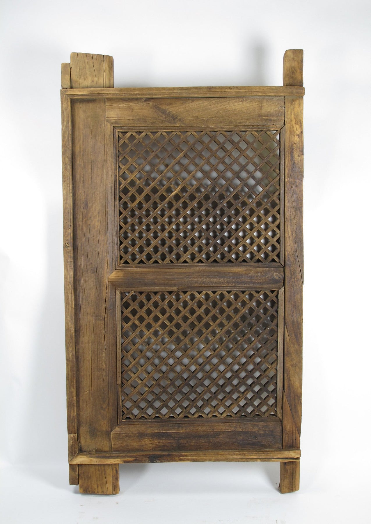 This pair of wood screen window is made of elm wood and is still in its original shape and color. It would be an unique pair of decorative window, or wall arts, or headboard. The price is for the pair.