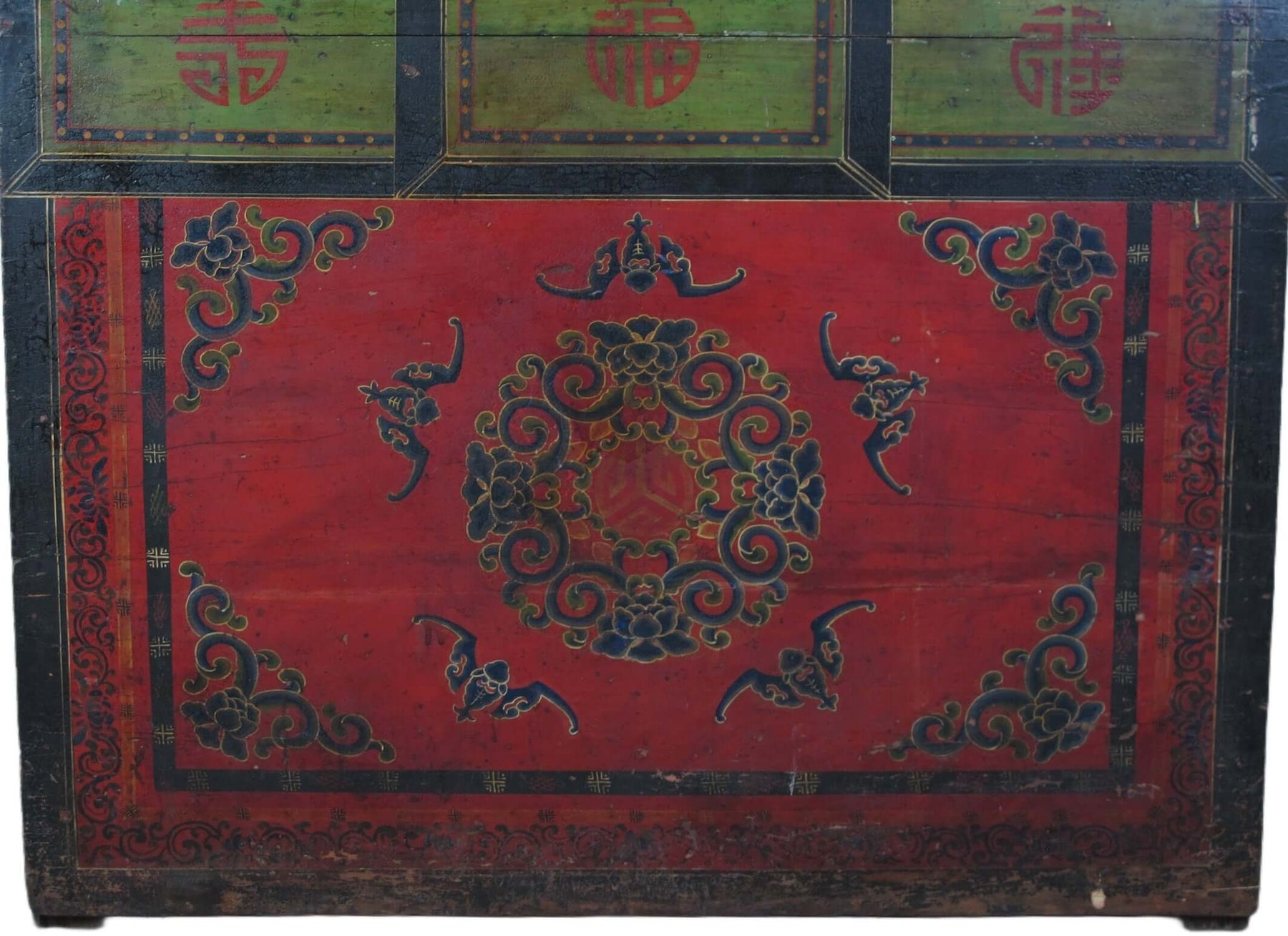 Hand Painted Five Bats Antique Gansu Tibetan Cabinet >