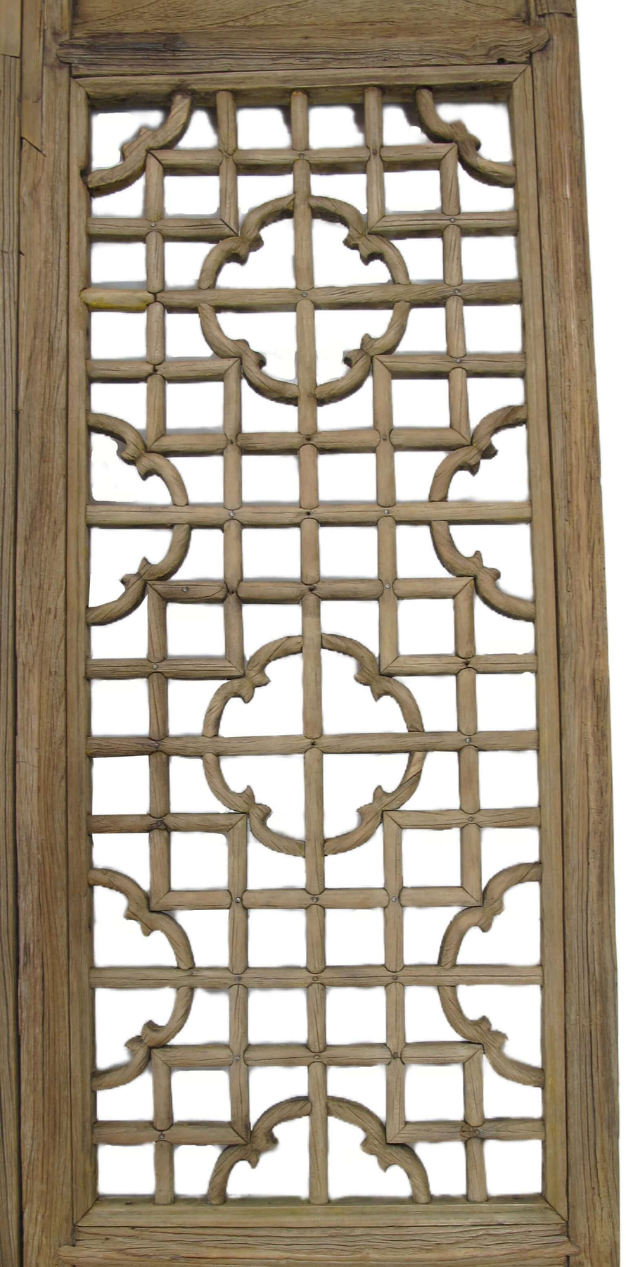 The restoration to this set of 4 antique Chinese panel screens is intentionally kept minimum. A set of 4 panel screens with amazing latticework in light natural wood color. The gorgeous lattice works are tenor and mortise interlocked, allow air to circulate nicely, and sun shines through to creates a mesmerizing visual effect. This 4 panel screen set can be used as room divider, screen doors, or a set of wall arts in living room or hall way and will last for generations to admire.