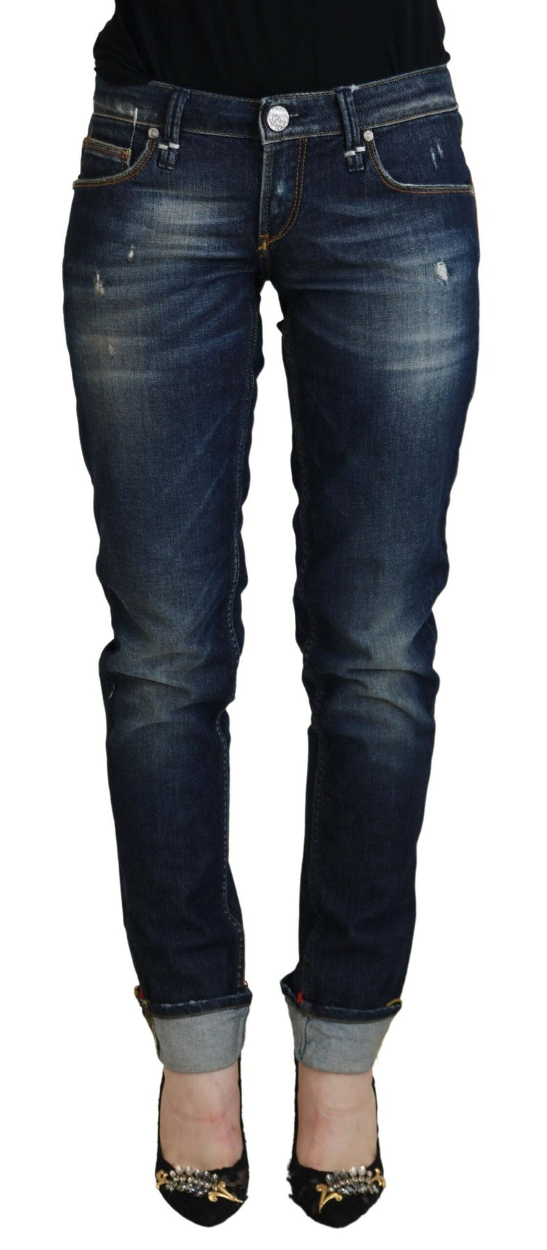 Acht Blue Cotton Slim Fit Women Casual Denim Jeans >
