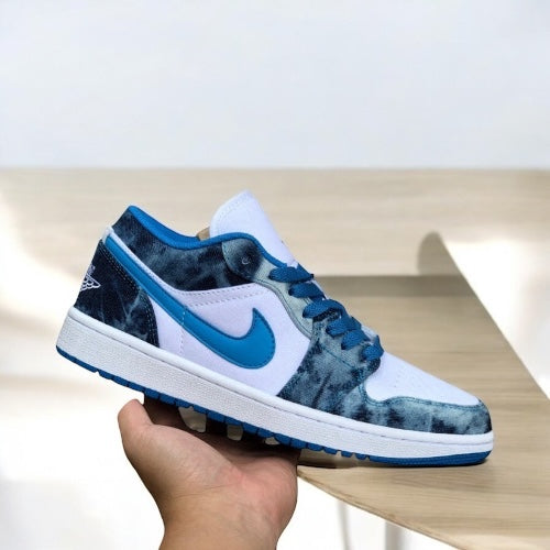 Elevate your style with the Air Jordan 1 Low AJ1 in white and blue. This classic low-top sneaker features a sleek leather upper and a cushioned sole for comfort. Perfect for casual wear or on the court, these versatile sneakers enhance any outfit effortlessly!