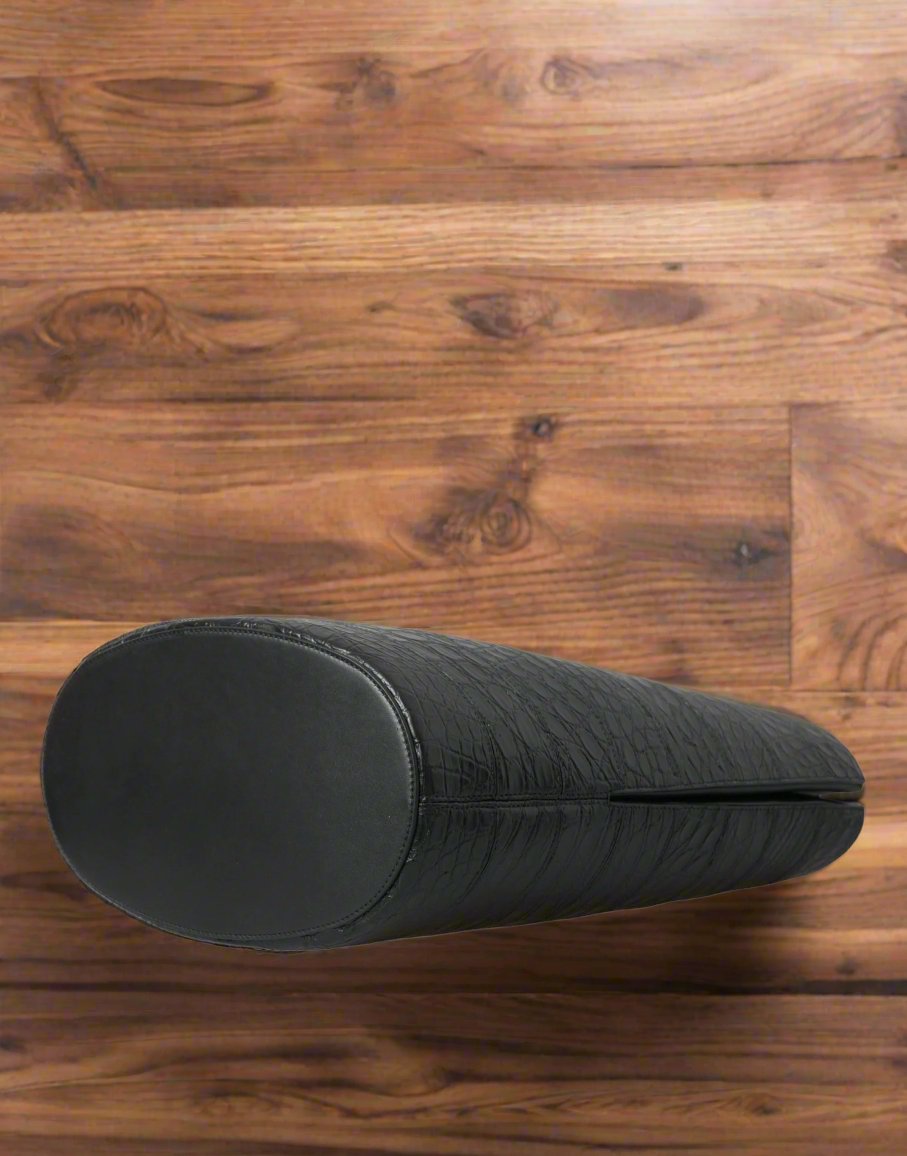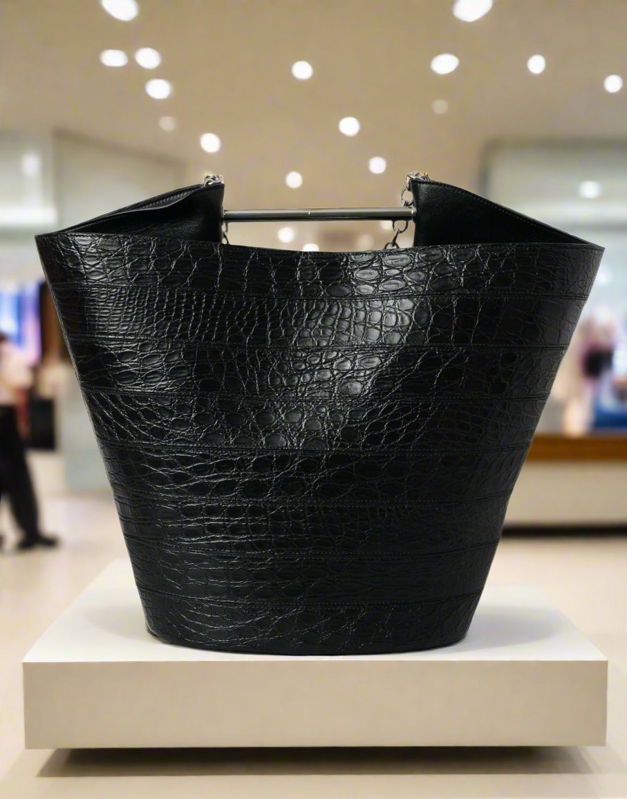 BALENCIAGA Black Crocodile Leather Maxi Bucket Bag