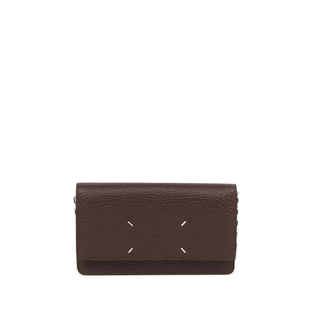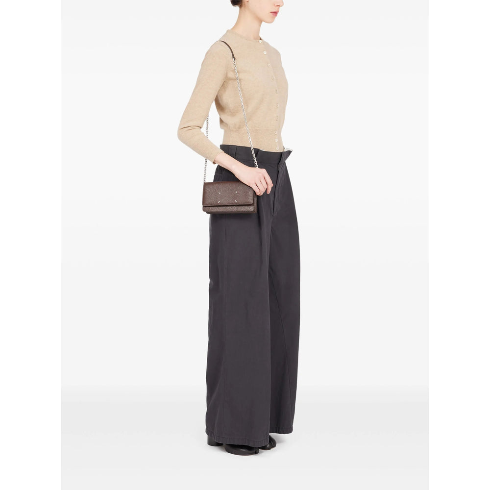 chocolate brown magnetic fastening chain-link shoulder strap signature numbers motif internal zip-fastening pocket