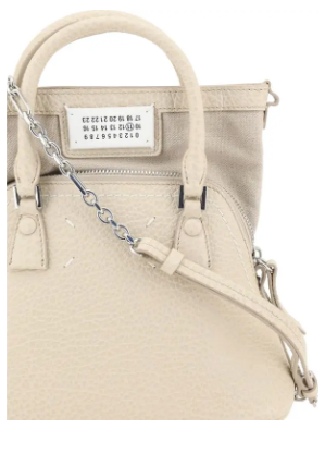 The Calfskin 5AC Handbag by Margiela is a luxurious and stylish accessory that is perfect for any fashion-forward individual. Made from high-quality calfskin leather, this handbag exudes elegance and sophistication. The double rigid leather handles provide a comfortable and sturdy grip, while the removable and adjustable chain shoulder strap adds versatility to the bag's design.
