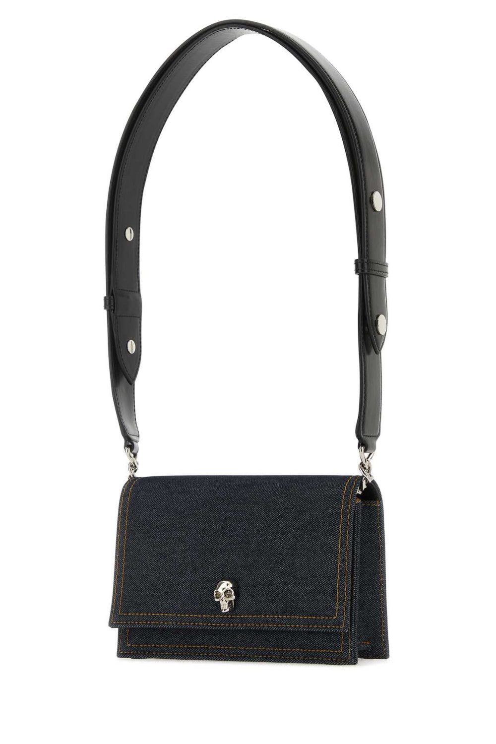 Alexander Mcqueen Women Dark Blue Denim Small Biker Skull Shoulder Bag