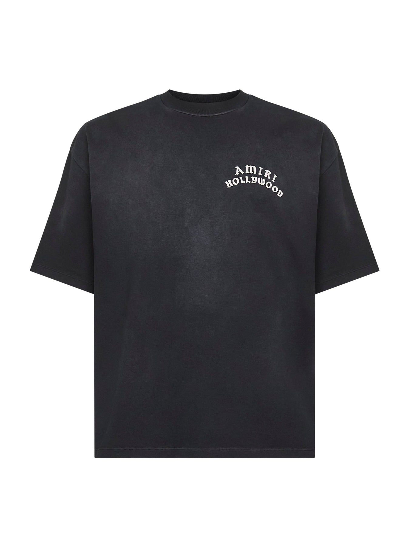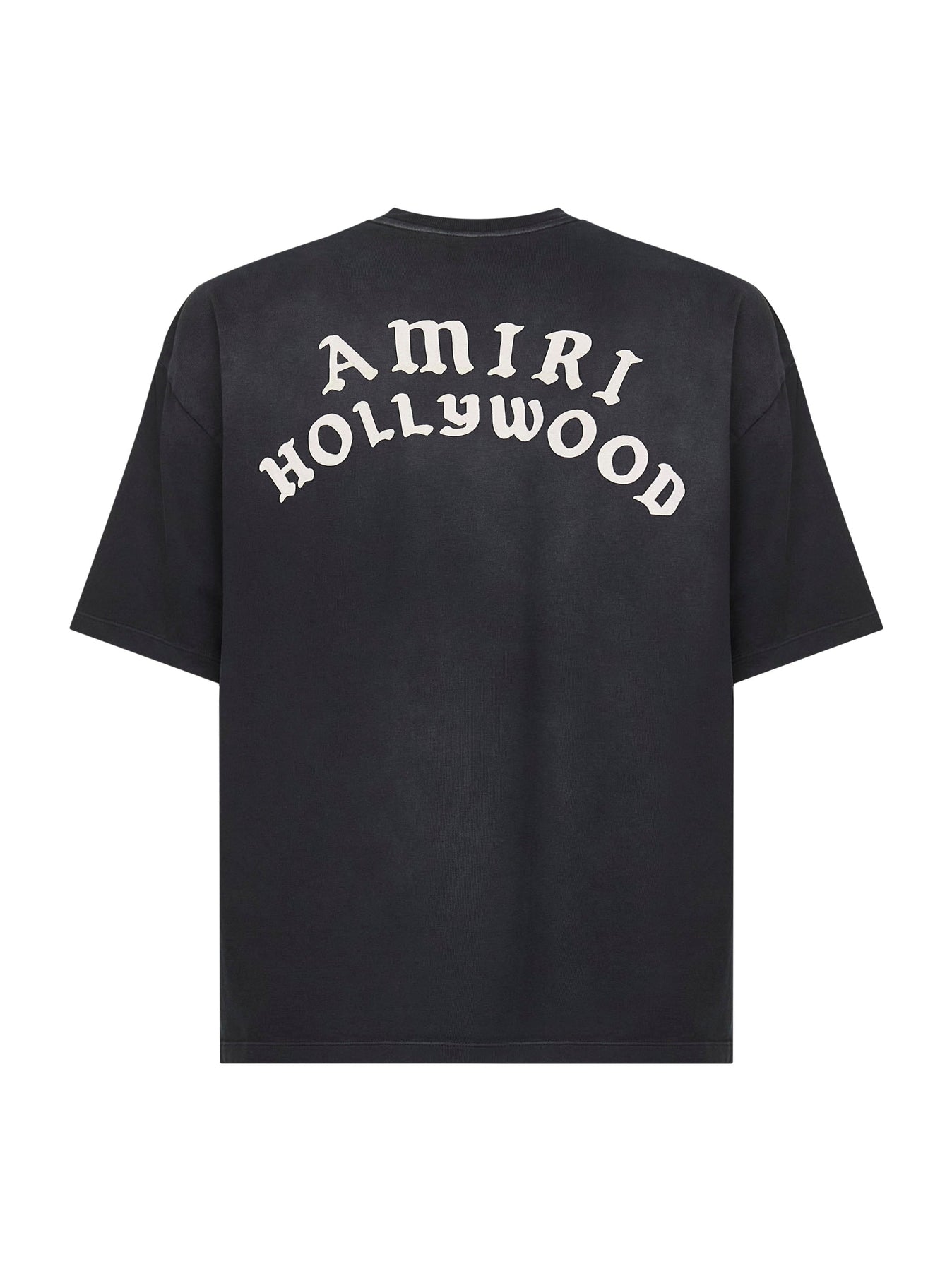 •Ribbed crewneck •Short sleeves, dropped shoulders •Contrasting AMIRI Hollywood lettering printed at chest and back •Faded-effect cotton jersey design •Oversized fit •Black color •100% Cotton •Made in Italy