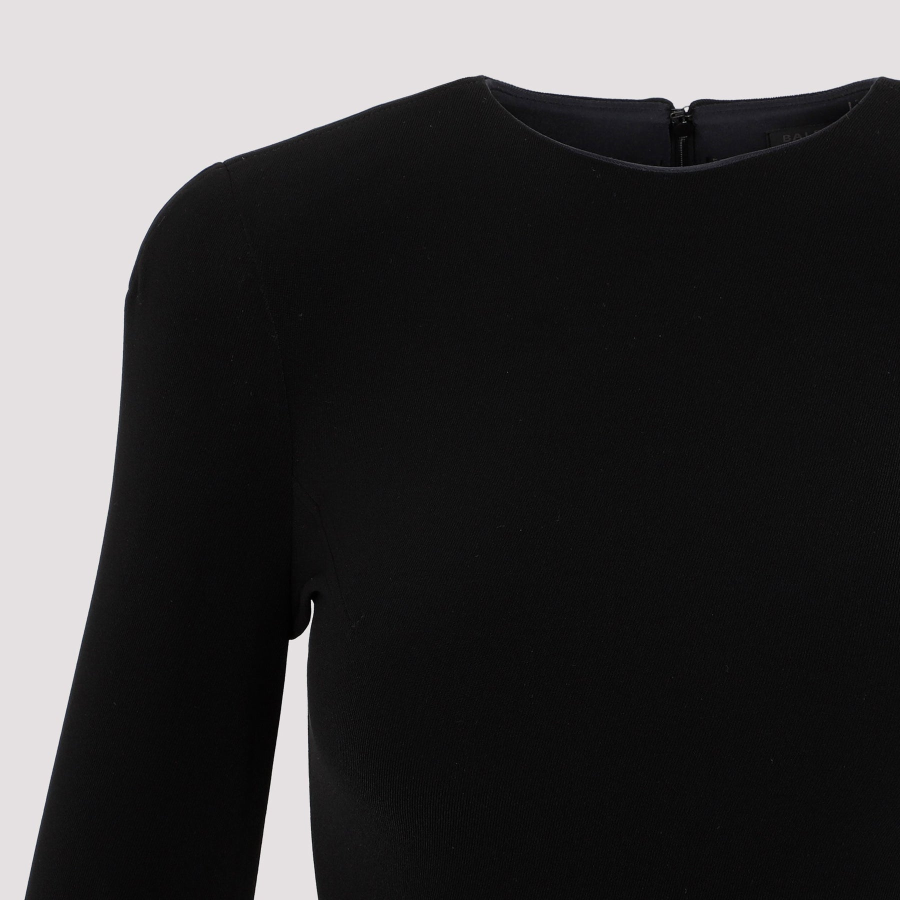 Balenciaga Black Dress. Crafted in a black blend of tech fabrics. Round neck, long sleeves, zipped cuffs, invisible back zip fastening, fitted waistline, straight hem. Polyester | 89%POLYESTER 11%ELASTAN