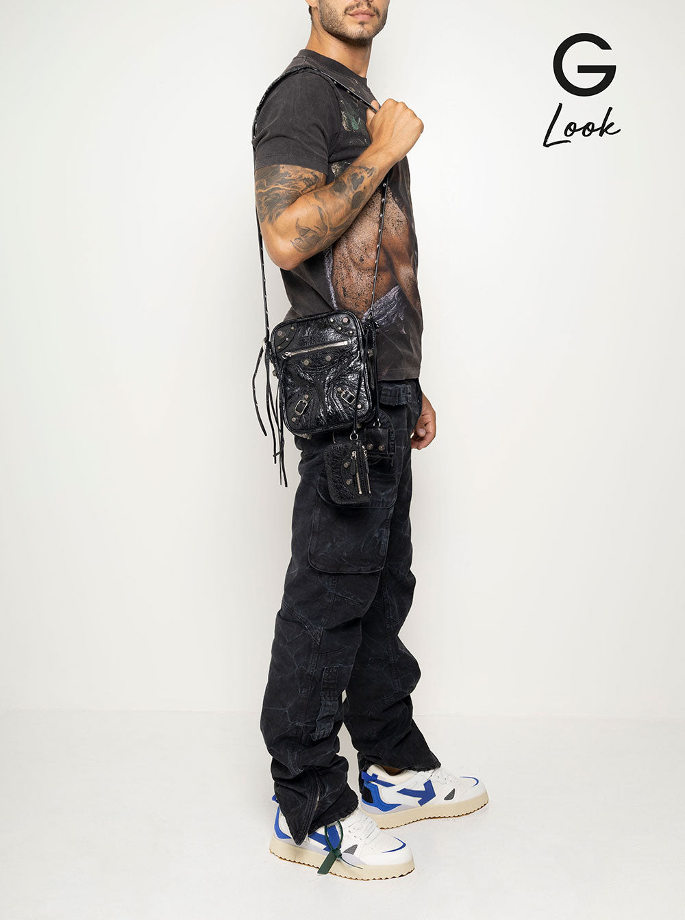 Balenciaga Men 'Le Cagole M' Black Shoulder Bag With Airpods Pro Case In Leather Man