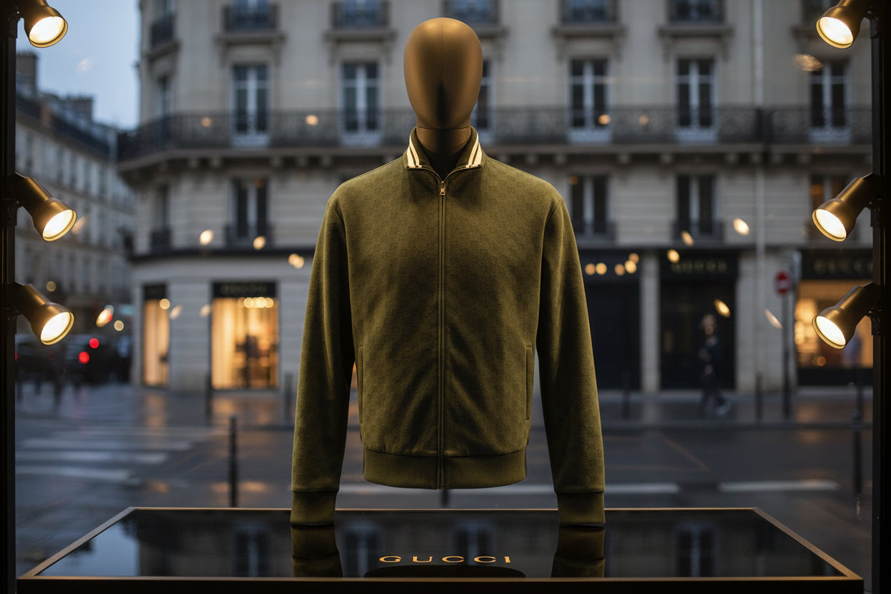 Modern performance meets iconic design in the Gucci GG technical jersey shell jacket—a refined outerwear piece that reinterprets heritage through contemporary texture.