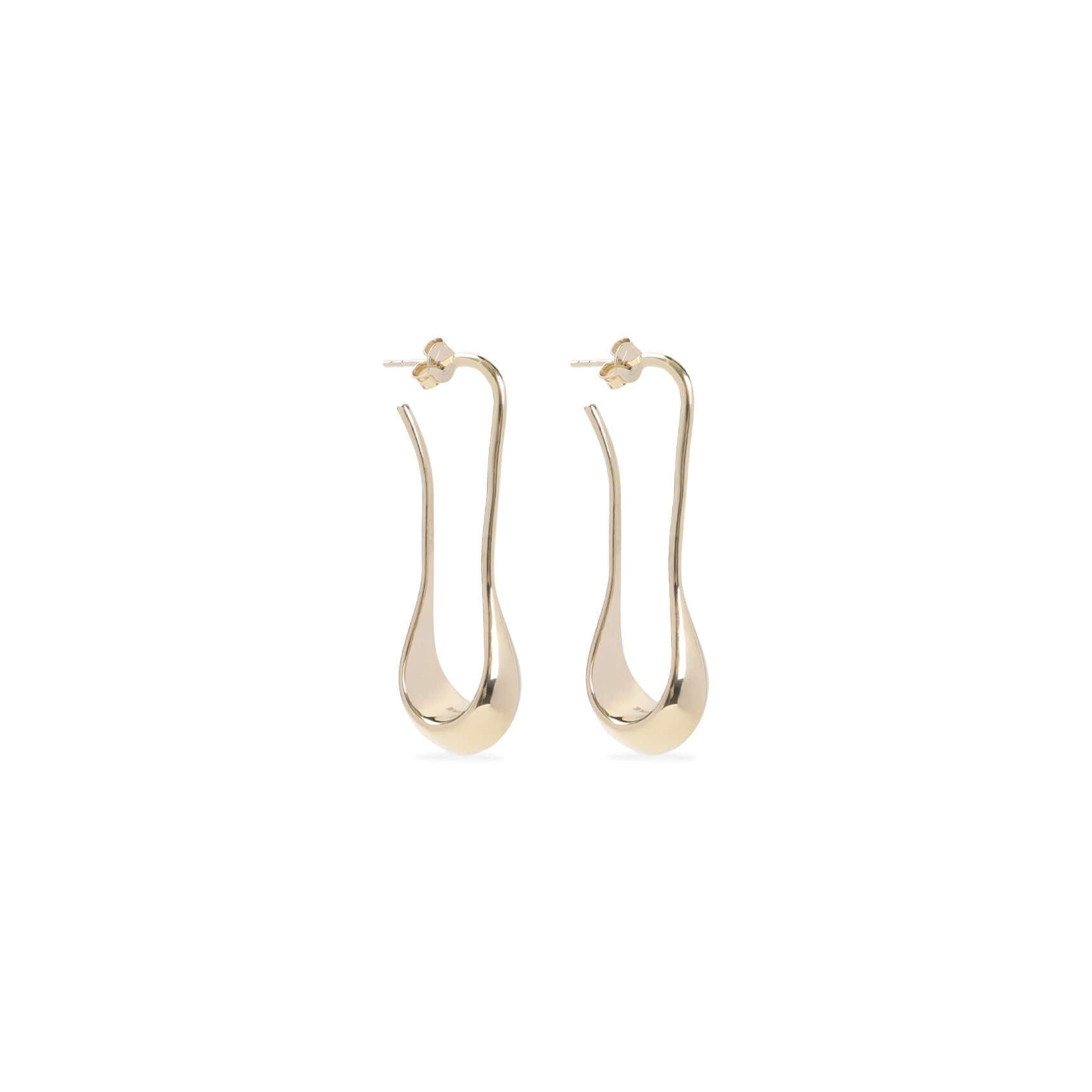 Lemaire Light Gold Short Drop Earrings. Light Gold bronze, small falling drops with slightly angular edges. Embossed logo. Silver | 100% SILVER
