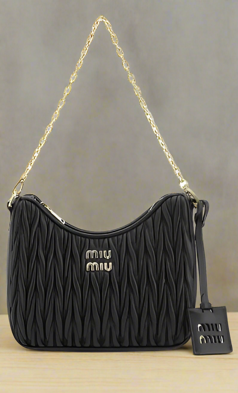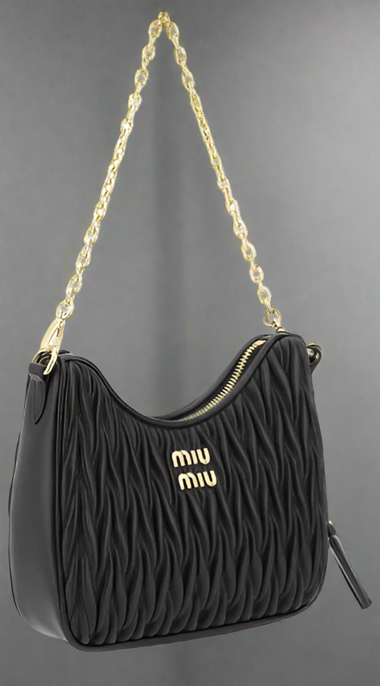 MIU MIU BLACK LEATHER WANDER SHOULDER BAG