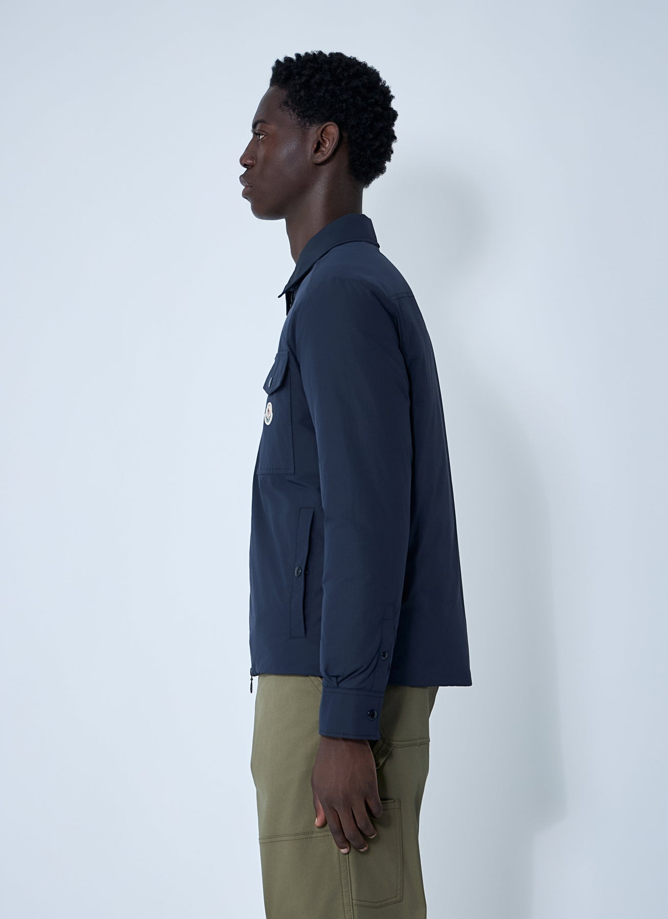 Vigeon shirt jacket with side logo patch.
