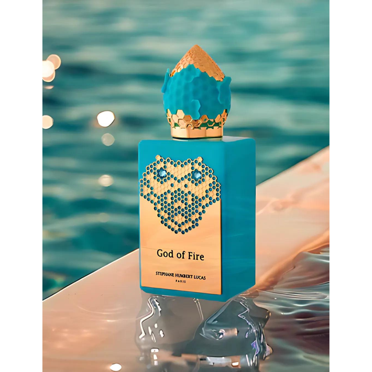 Fragrance story: God of Fire is inspired from the legend of Xiuhtecuhtli, God of fire, day and light in the Aztec mythology. Creator of all life, he is the mother and father of all Gods. He is the personification of light in the darkness, warmth in coldness and life in death. As a patron of kings and warriors, he is shown carrying a turquoise serpent around him and wearing a crown and ornaments made of a Turquoise blue stones.
