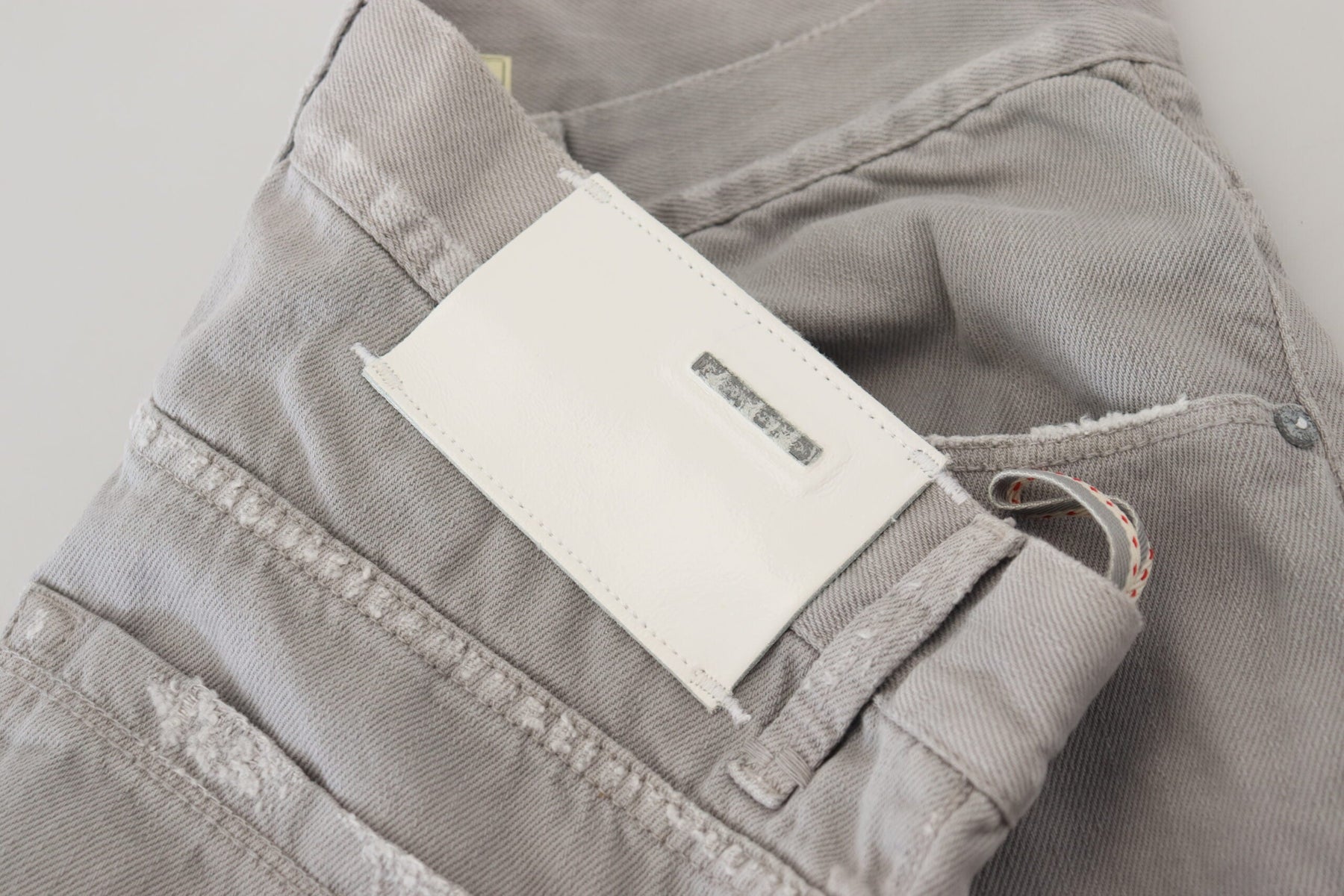 Acht Gray Cotton Straight Fit Folded Hem Casual Denim Jeans