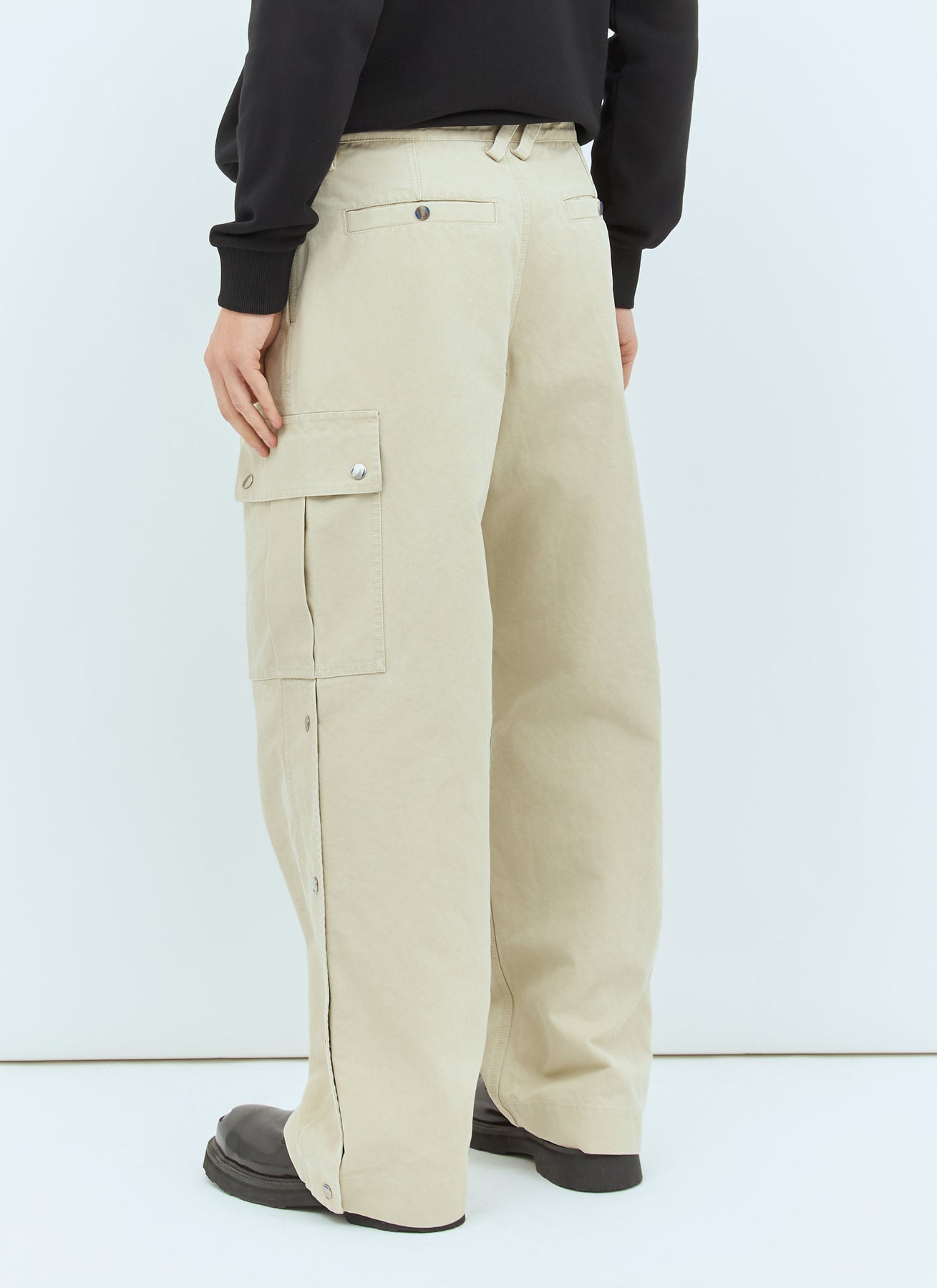 Cargo pants in cotton canvas with snap-fastening legs.