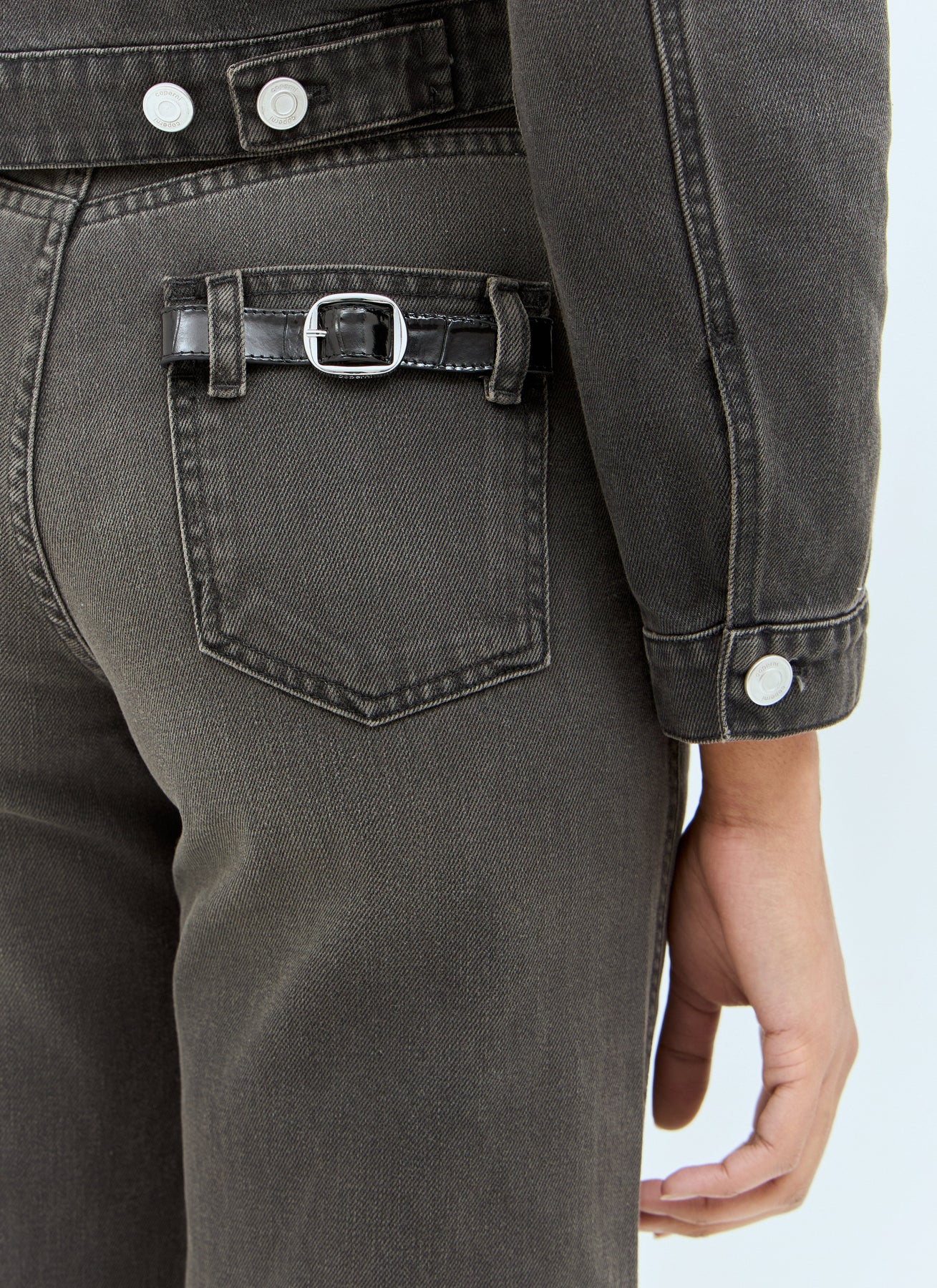 - Rear belt embellishment