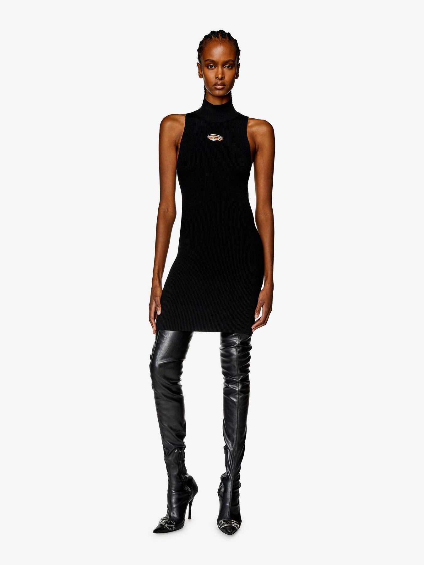 • High collar Sleeveless Oval-D metal cut-out detail Slim fit 83% viscose, 17% polyester SKU: A123960DLAX9XX