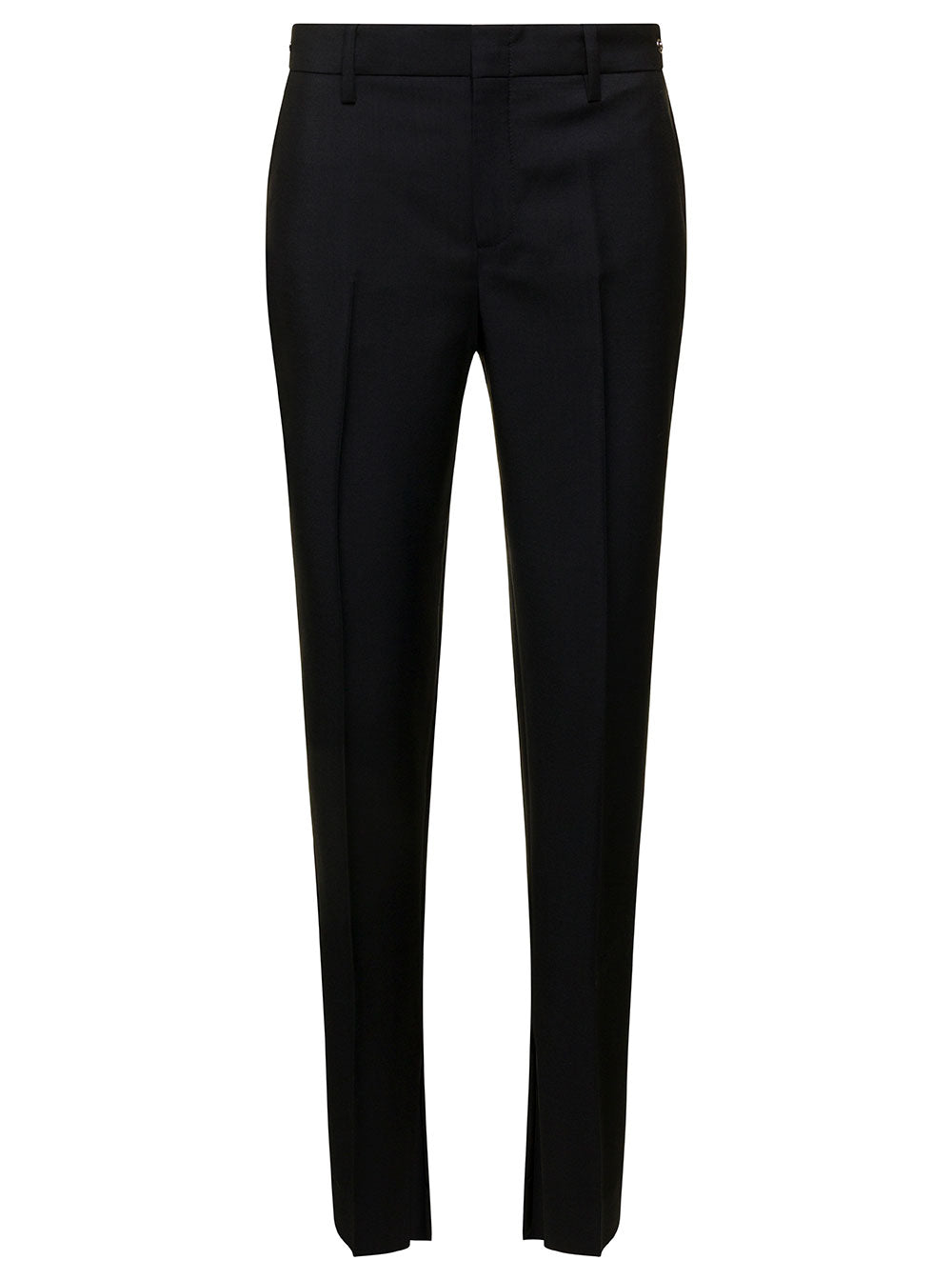 Pants Mid-waist Belt loops Side Horsebit detail Tonal stitching Split details Silver-colored metalware Black Mohair and wool Slim fit