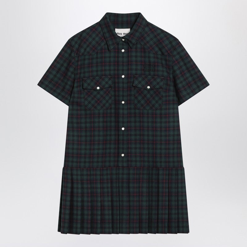 Miu Miu Blue And Green Tartan Mini Dress Women