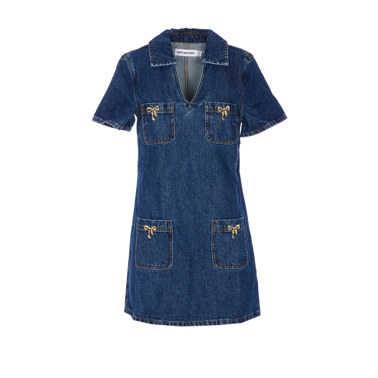 Self Portrait Women Denim Crystal Bow Mini Dress