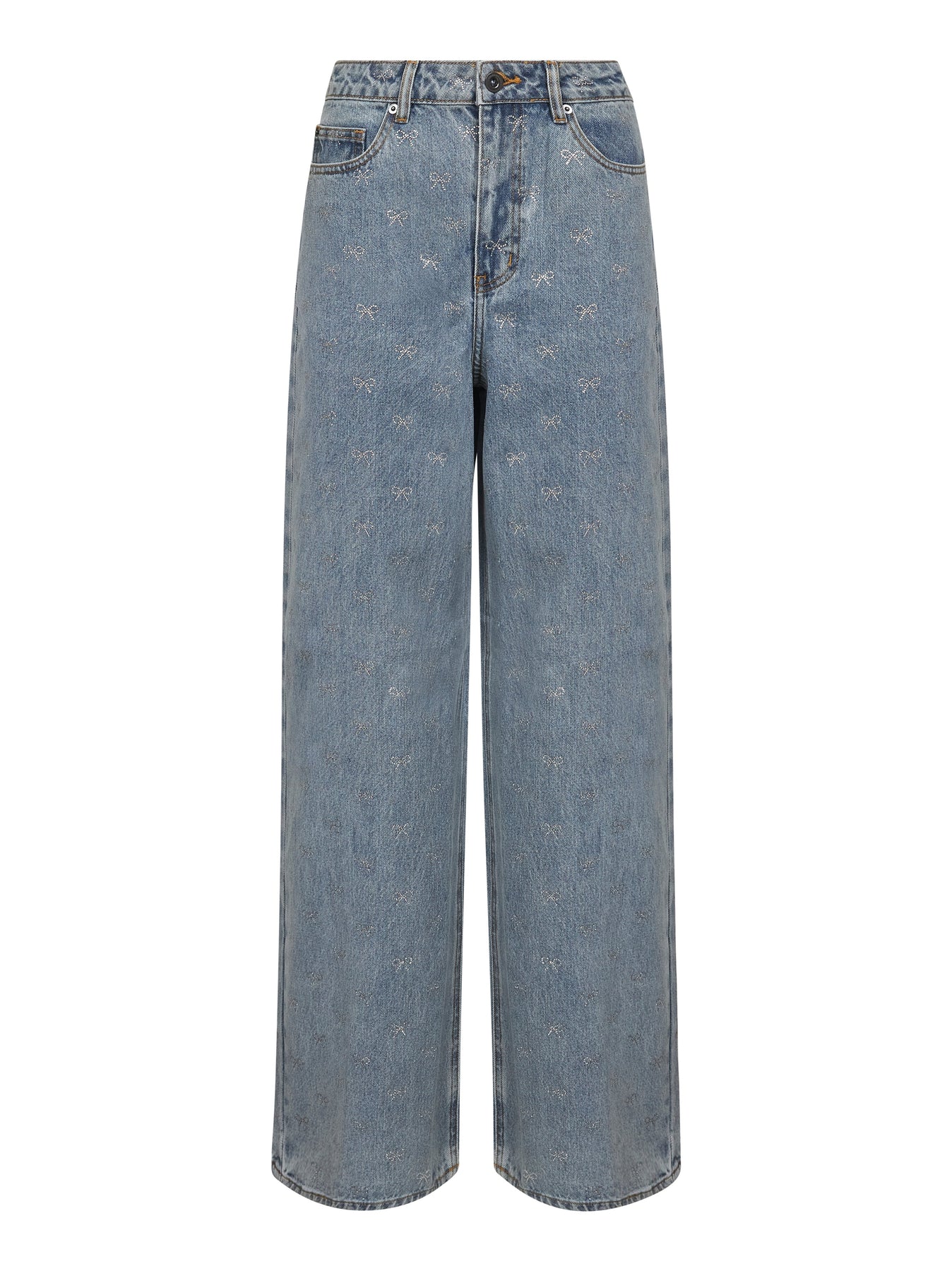 Self Portrait Women Light Blue Denim Diamante Bow Jeans