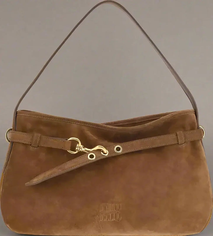 MIU MIU Aventure brown Suede Shoulder Bag with gold tone hardware