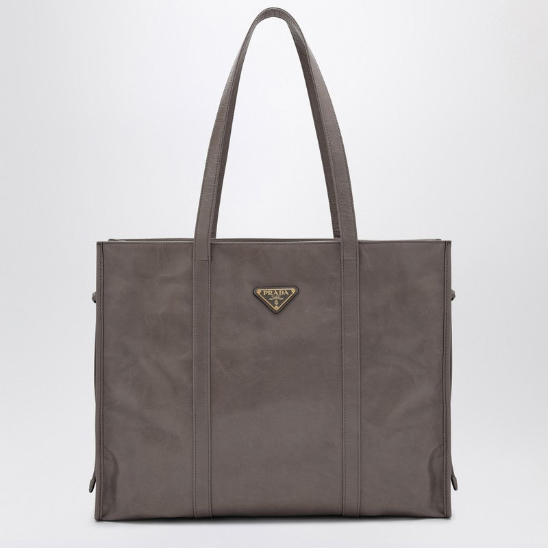 Prada Large Grey Leather Shopping Bag Women