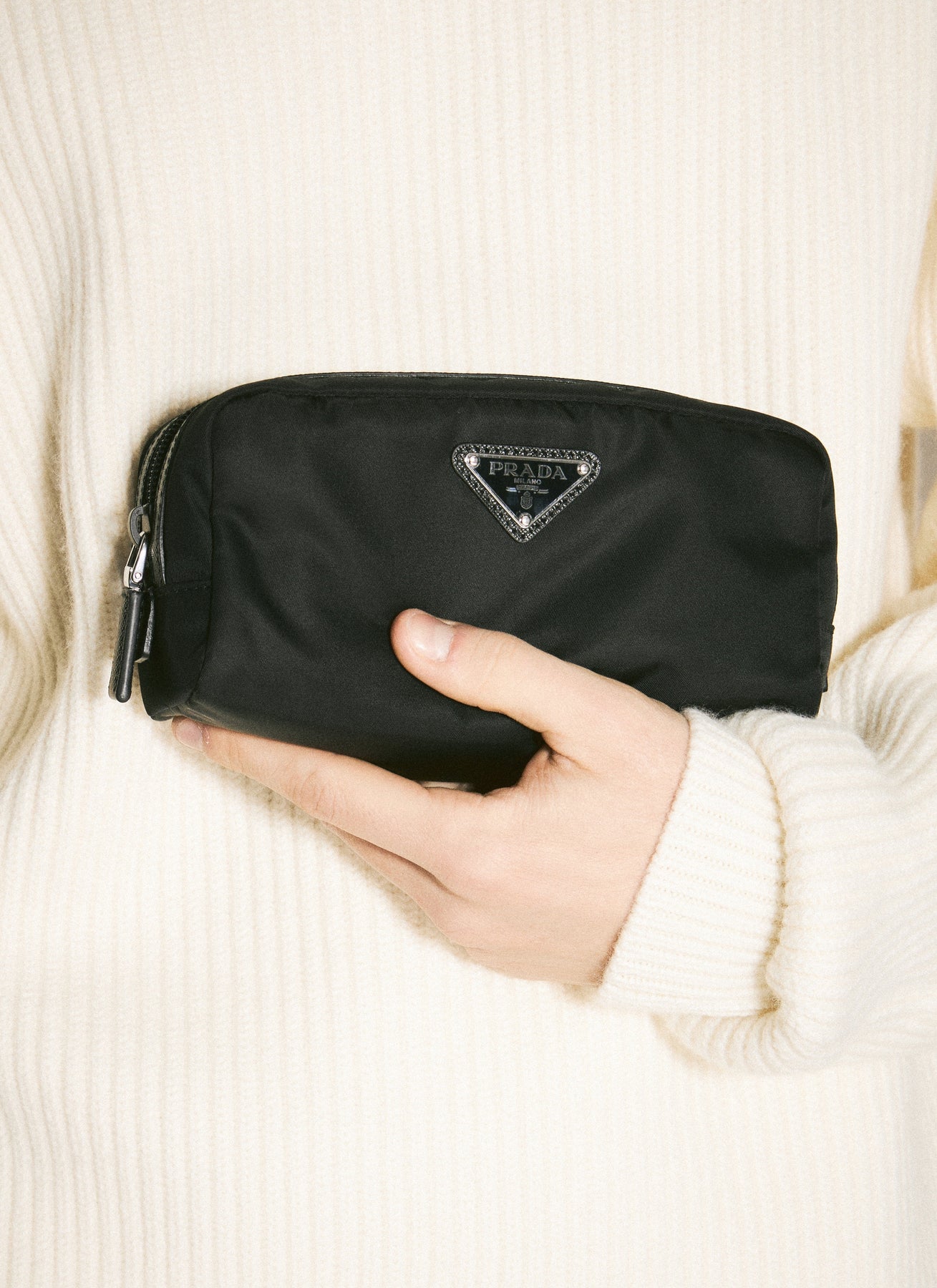 Re-Nylon and saffiano cosmetic case with signature front triangle plaque.