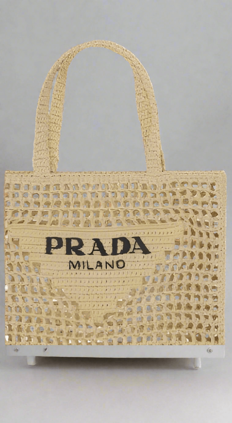 Prada Raffia Shoulder Bag is a summery and refined accessory, crafted with a perforated crochet workmanship that gives it a light and sophisticated look. The brand’s iconic contrasting embroidered logo on the front adds a distinctive and recognizable touch. This bag combines practicality and style, ideal for casual-chic looks during the warm season.