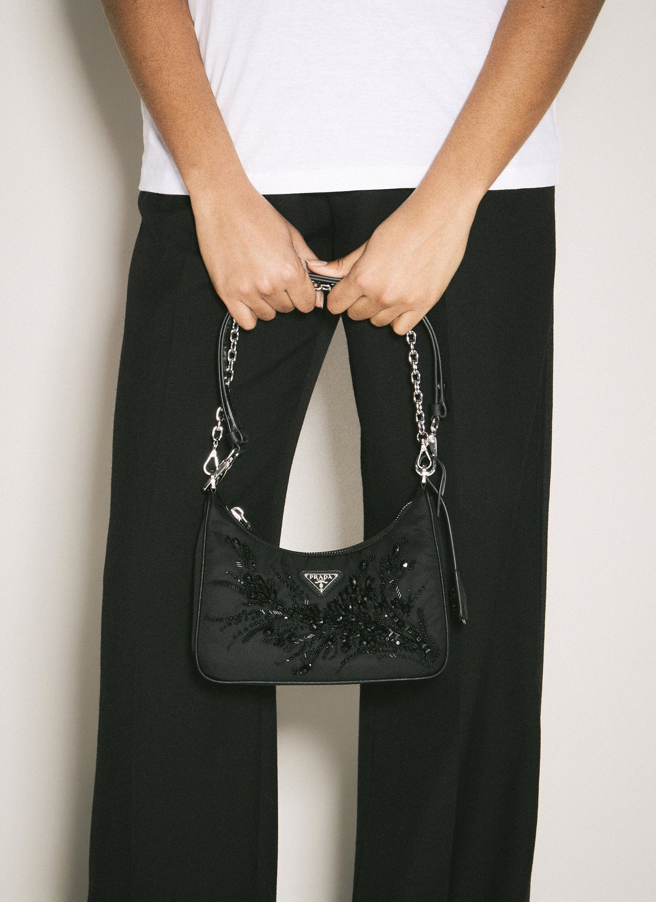 Mini Re-Edition shoulder bag with front crystal embellishment.