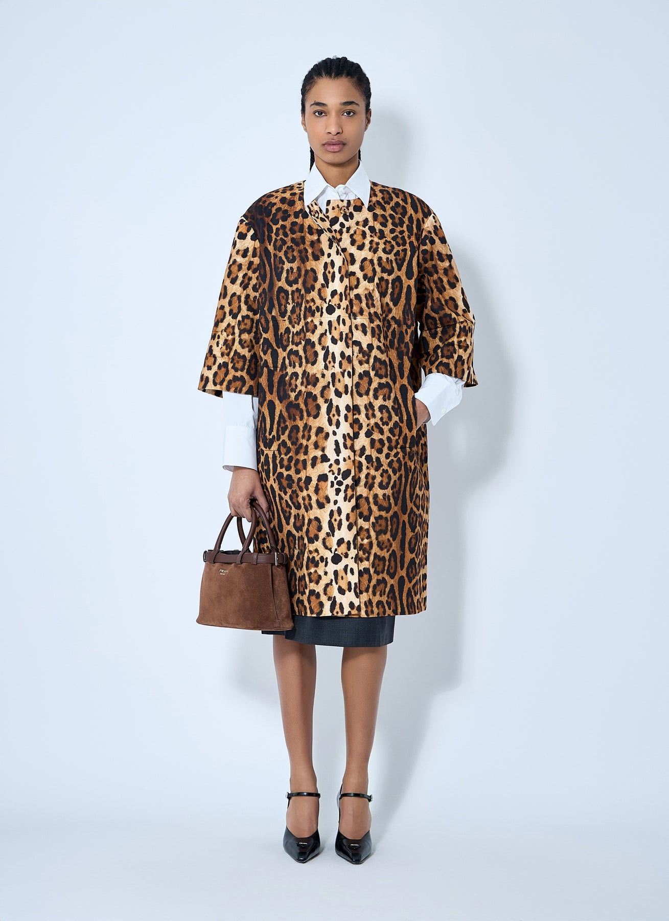 Prada Women Single-Breasted Leopard Print Drill Coat