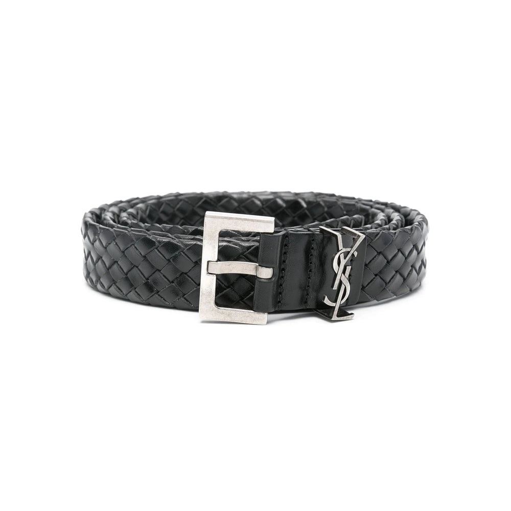 black calf leather interwoven design pointed tip signature Cassandre logo plaque adjustable fit silver-tone pin-buckle fastening
