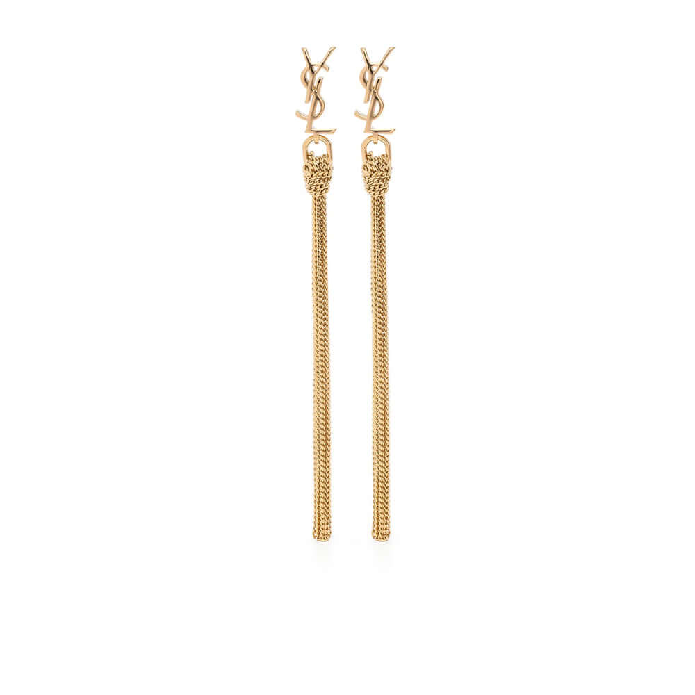 gold-tone signature Cassandre logo plaque knot detailing metal tassel detail post-back fastening for pierced ears These earrings come as a pair.