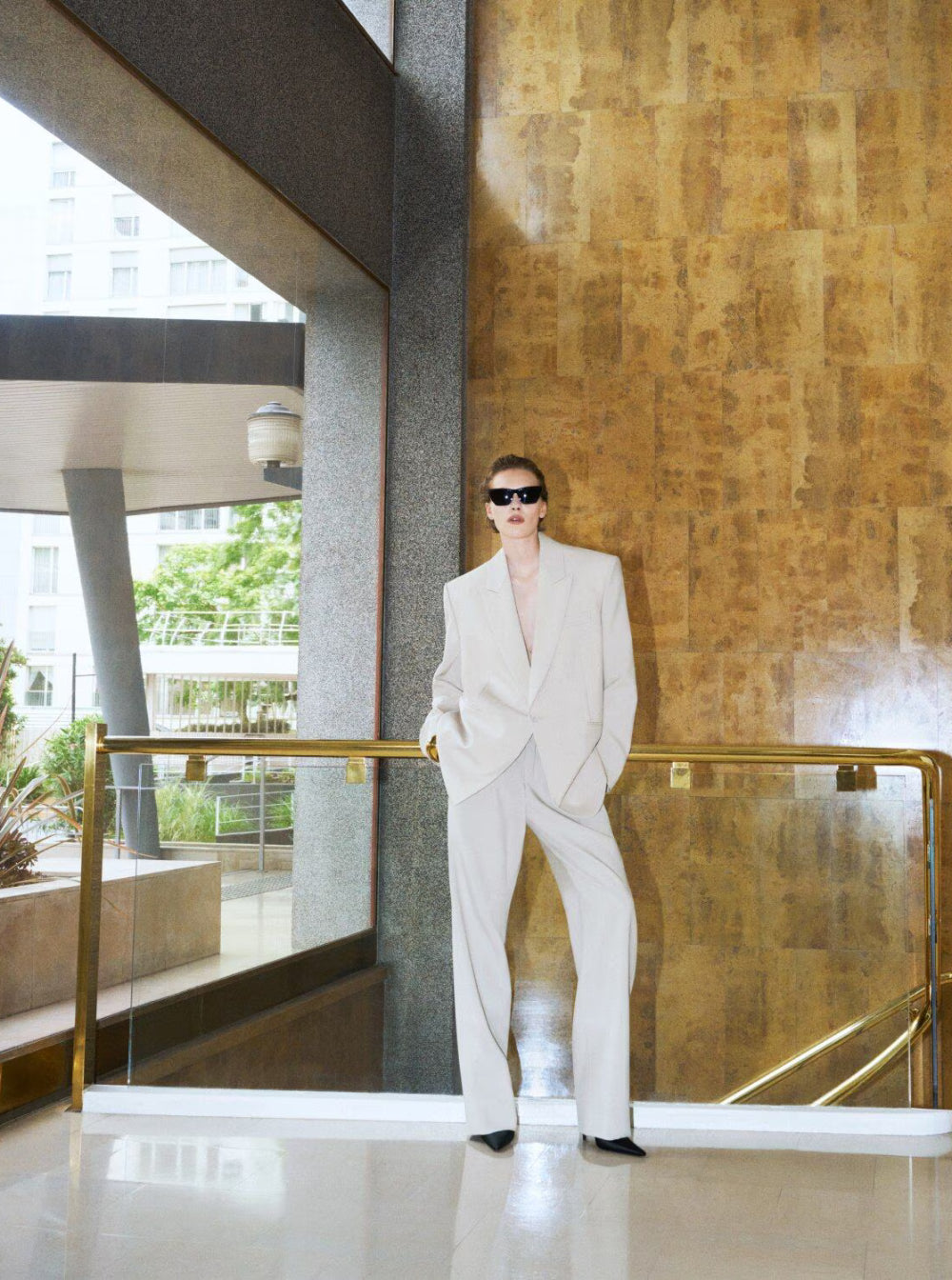 Pants Beige Belt loops Front concealed closure Two side pockets Pences on the front Straight hem Wool Relaxed fit