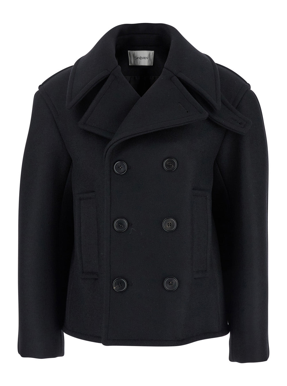 Saint Laurent Women Black Double-Breasted Coat With Classic Wide Revers In Wool Woman