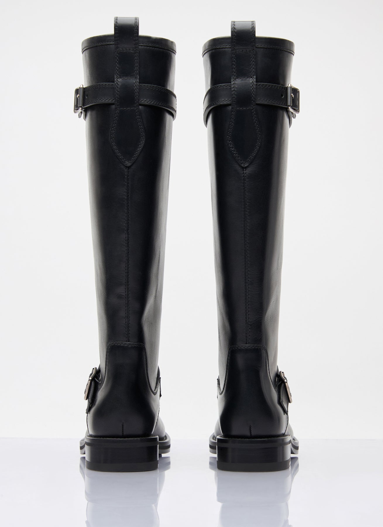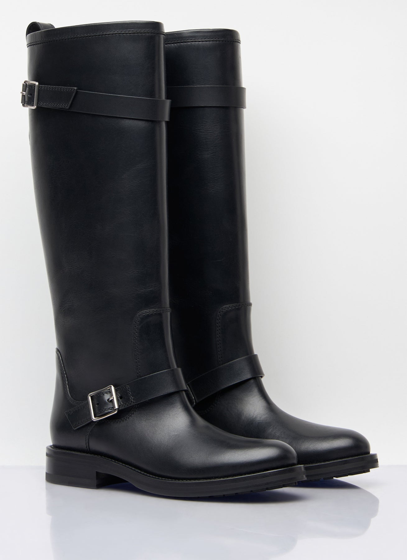 River boots in leather with buckle-fastening straps.