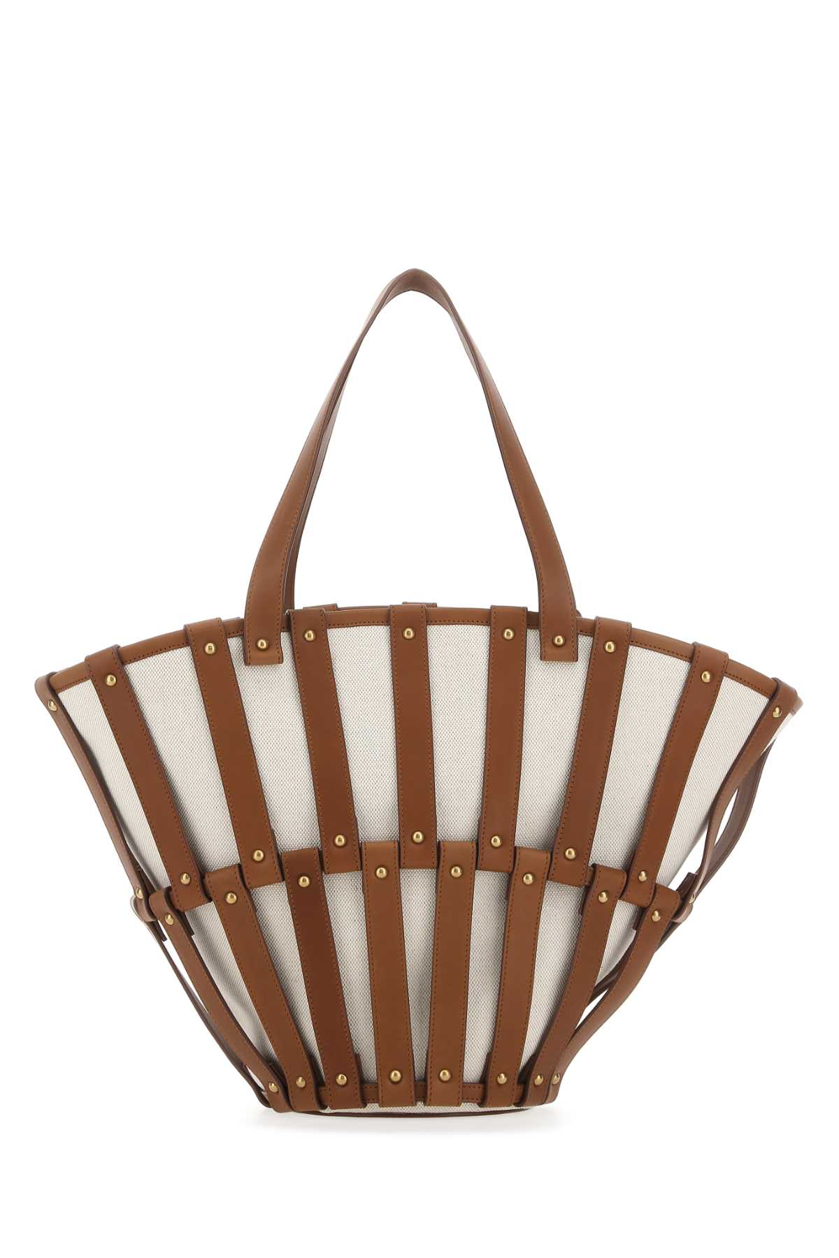 Saint Laurent Women Two-Tone Canvas And Leather Medium Beatrix Shopping Bag