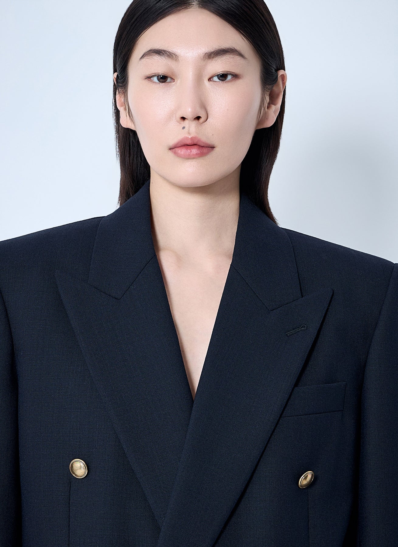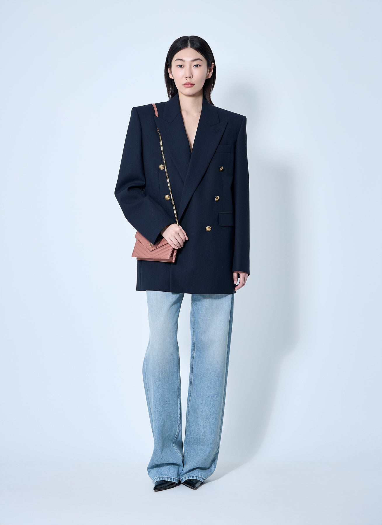 Double-breasted blazer in wool weave.
