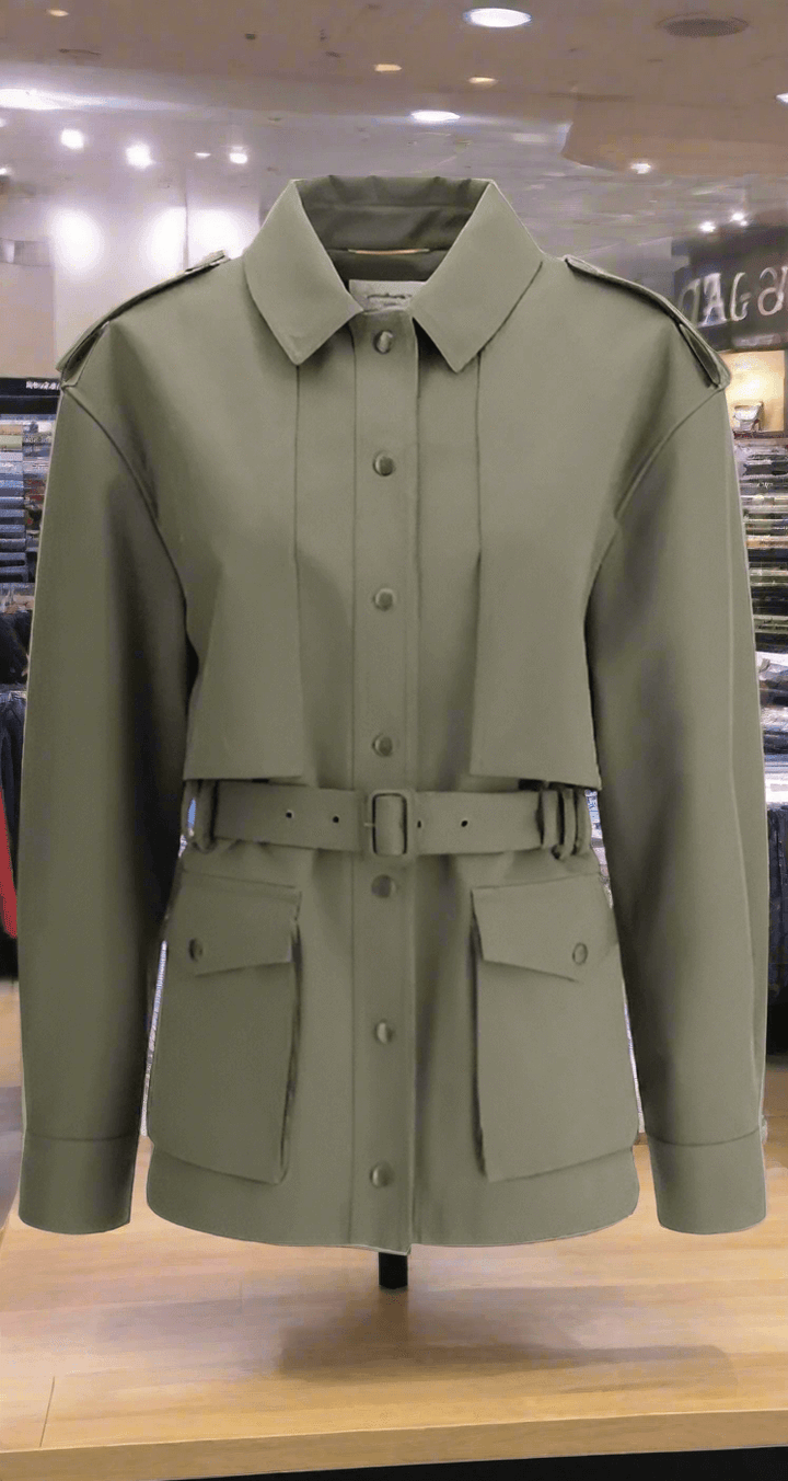 The Saharienne Jacket by Saint Laurent is a versatile and sophisticated piece, perfect for an elegant and practical look. The classic collar and the front closure with snap buttons offer a clean and structured design, while the two patch pockets on the front with flap and buttons add a functional and stylish touch. The belt loops on the waist, together with the adjustable and removable matching belt, allow you to customize the fit, emphasizing the silhouette. An iconic and timeless piece, which combines comfort and class in a perfect way.