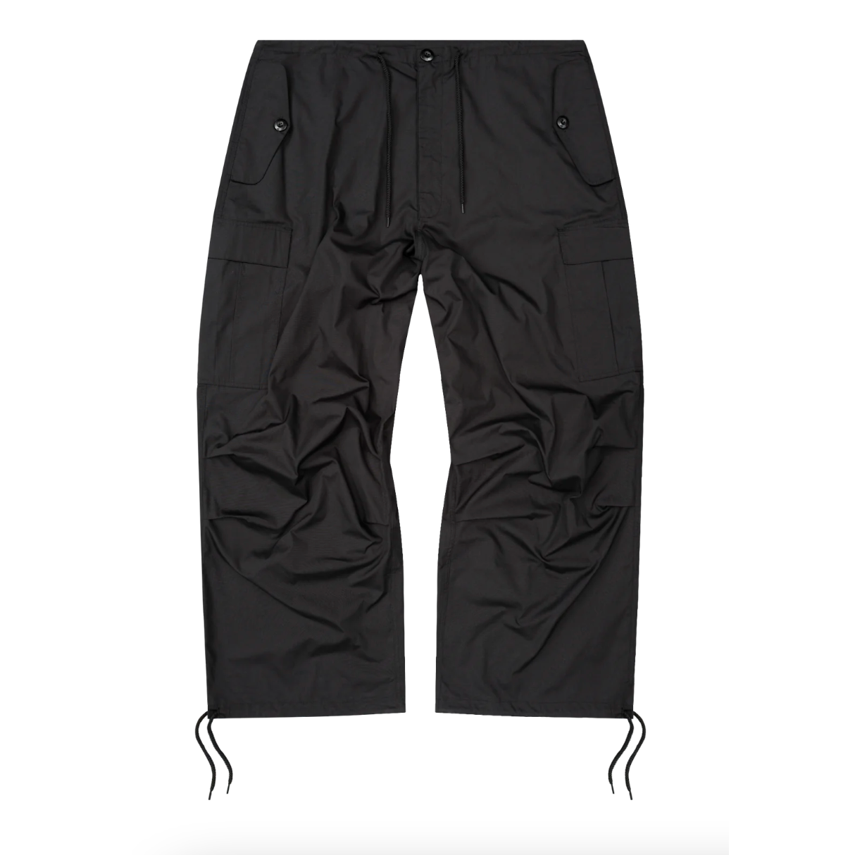 These cargos fit very baggy. The waist on s/m will fit a 28 - 32 and the waist on l/xl will fit a 34 - 36. The waist features a draw cord for tightening and there is also a draw cord at the ankles for tightening as well.