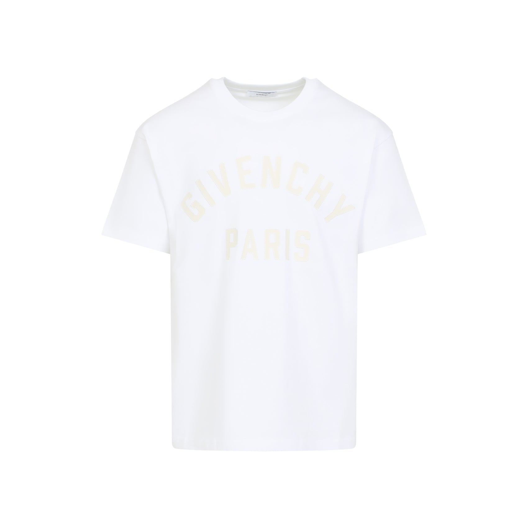 Givenchy White Cotton T-Shirt. Pure white cotton t-shirt, round neck, front contrasting white lettering logo, short sleeves, tonal stitching, straight hem. Cotton | 100%COTTON