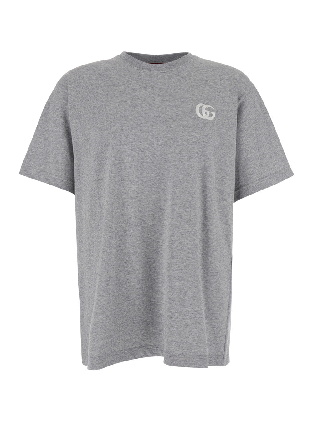 Gucci Men Grey Crewneck T-Shirt With Double G Embroidery On The Front In Fabric Man