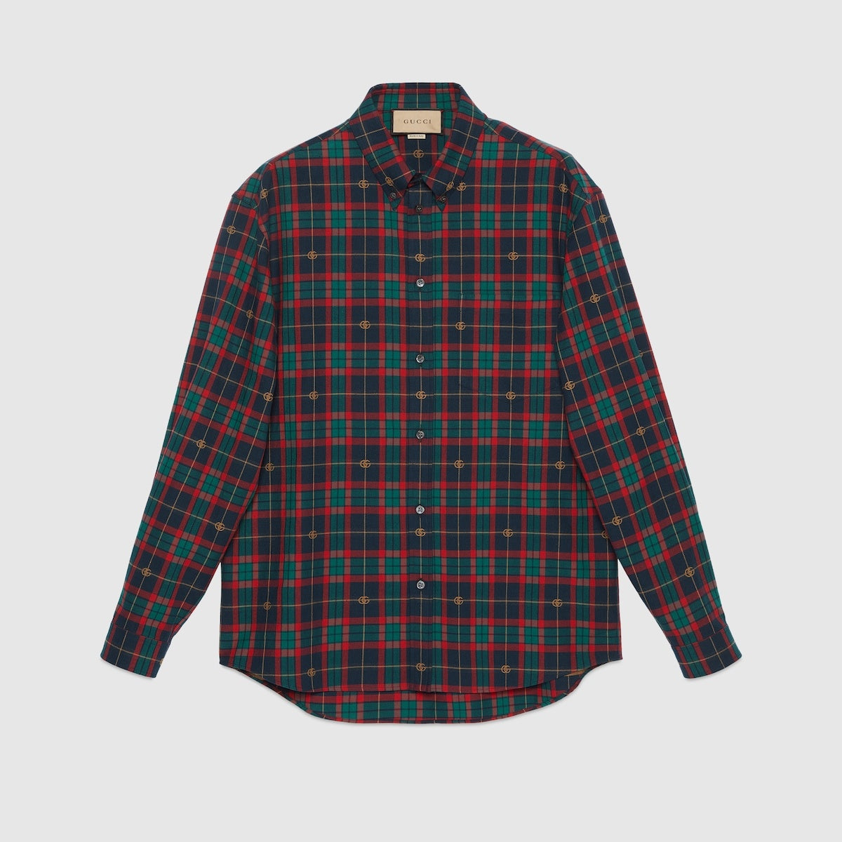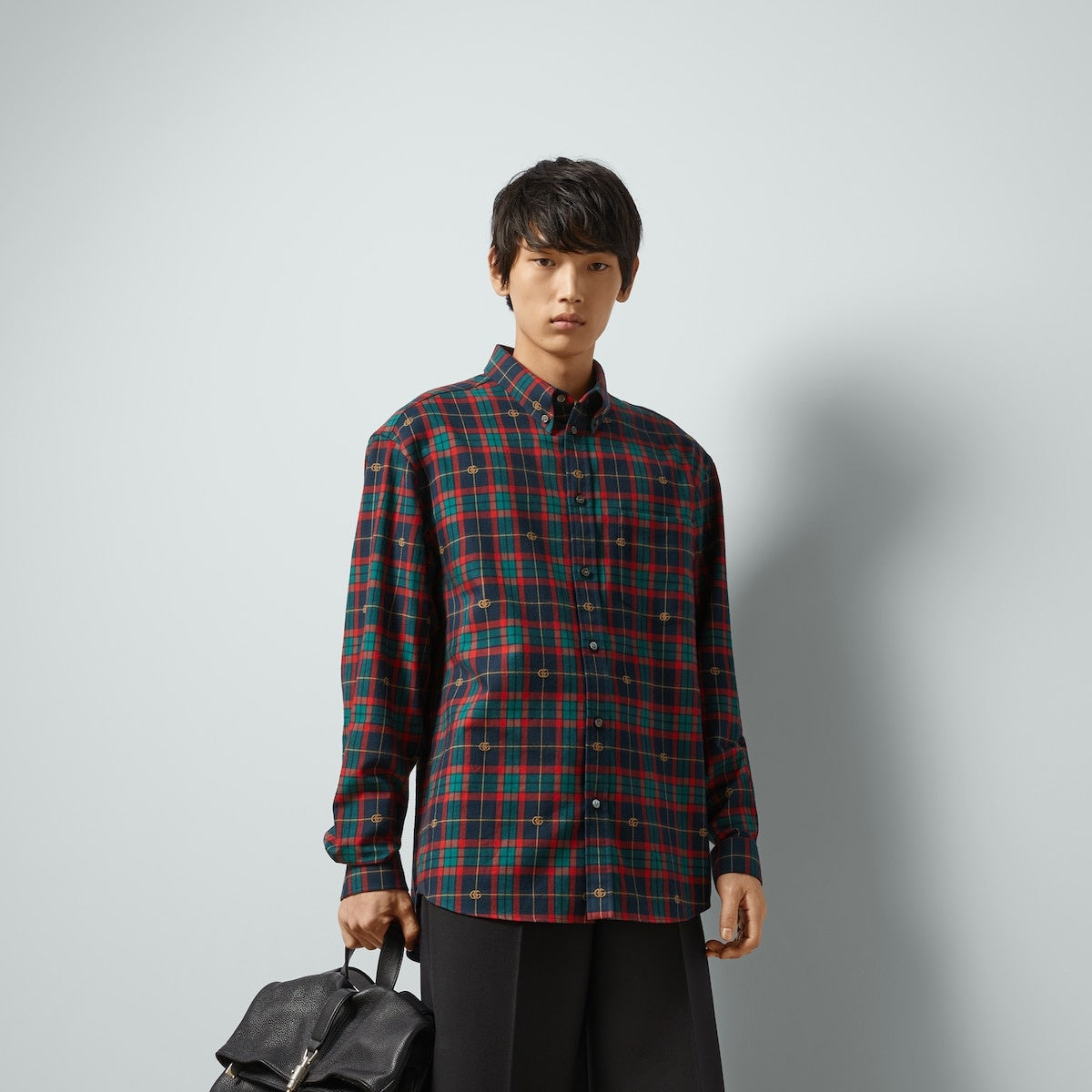 Gucci Men Red/Blue Checked Button-Down Shirt In Cotton