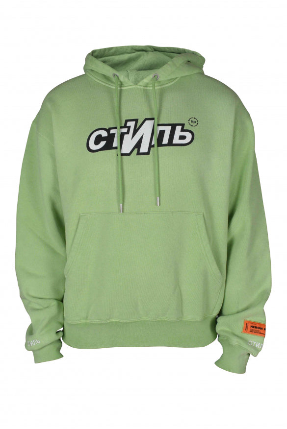 Oversized Heron Preston hooded sweatshirt in light green cotton.