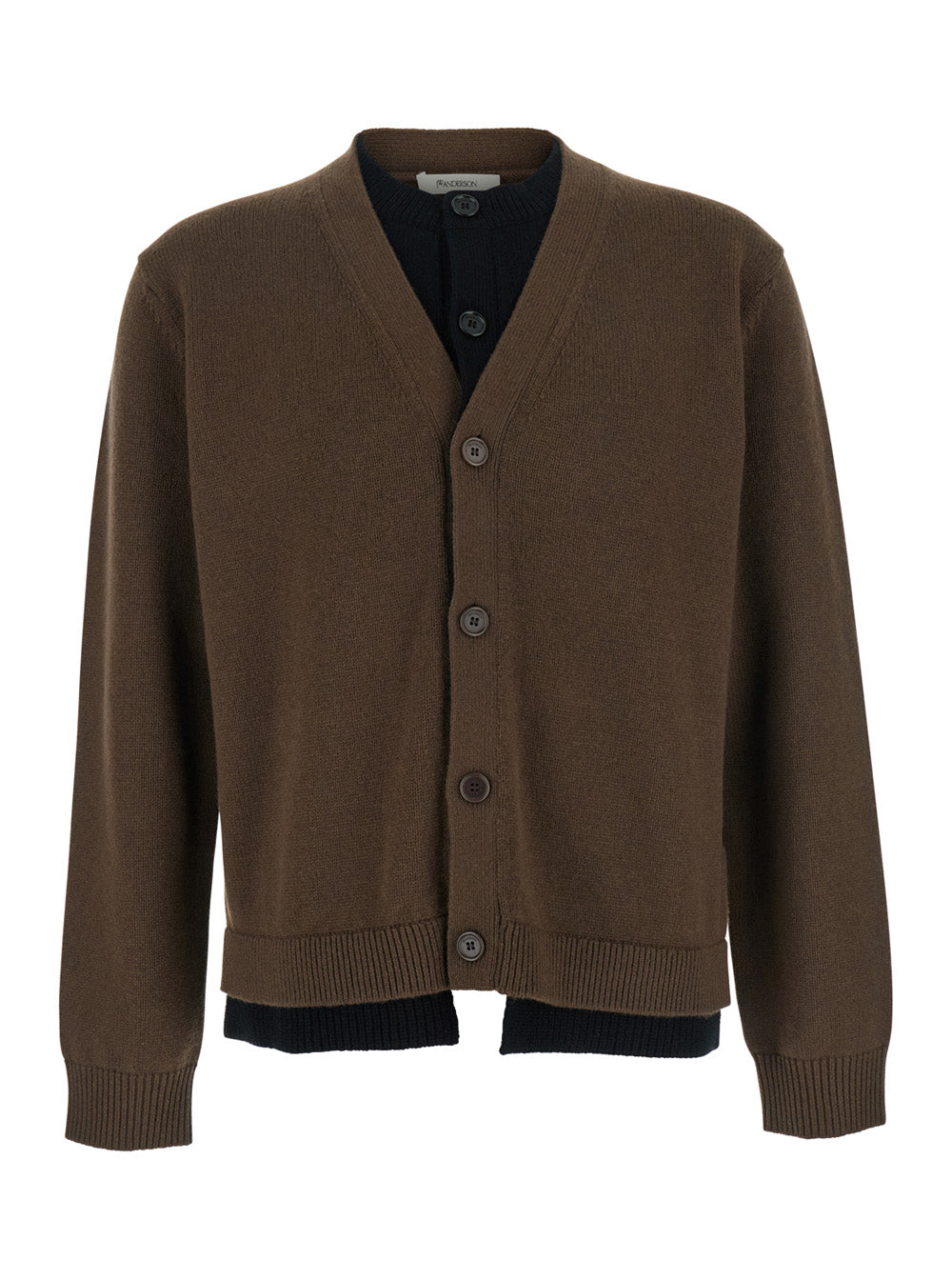 Jw Anderson Men Brown Cardigan With V-Neck And Layered Design In Fabric Man
