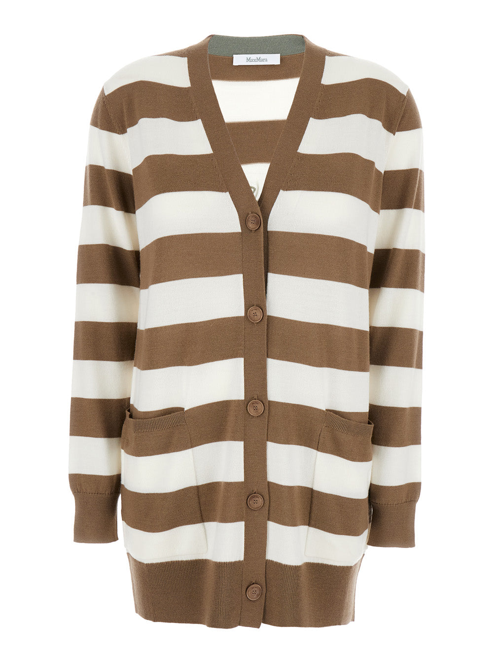 Max Mara Women 'Fiemme'beige Cardigan With Rear Embroidery And All-Over Striped Motif In Wool Woman