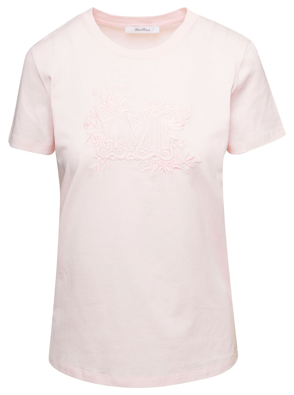 Max Mara Women Pink Crew Neck T-Shirt With Embroidered Logo On The Chest In Cotton Woman